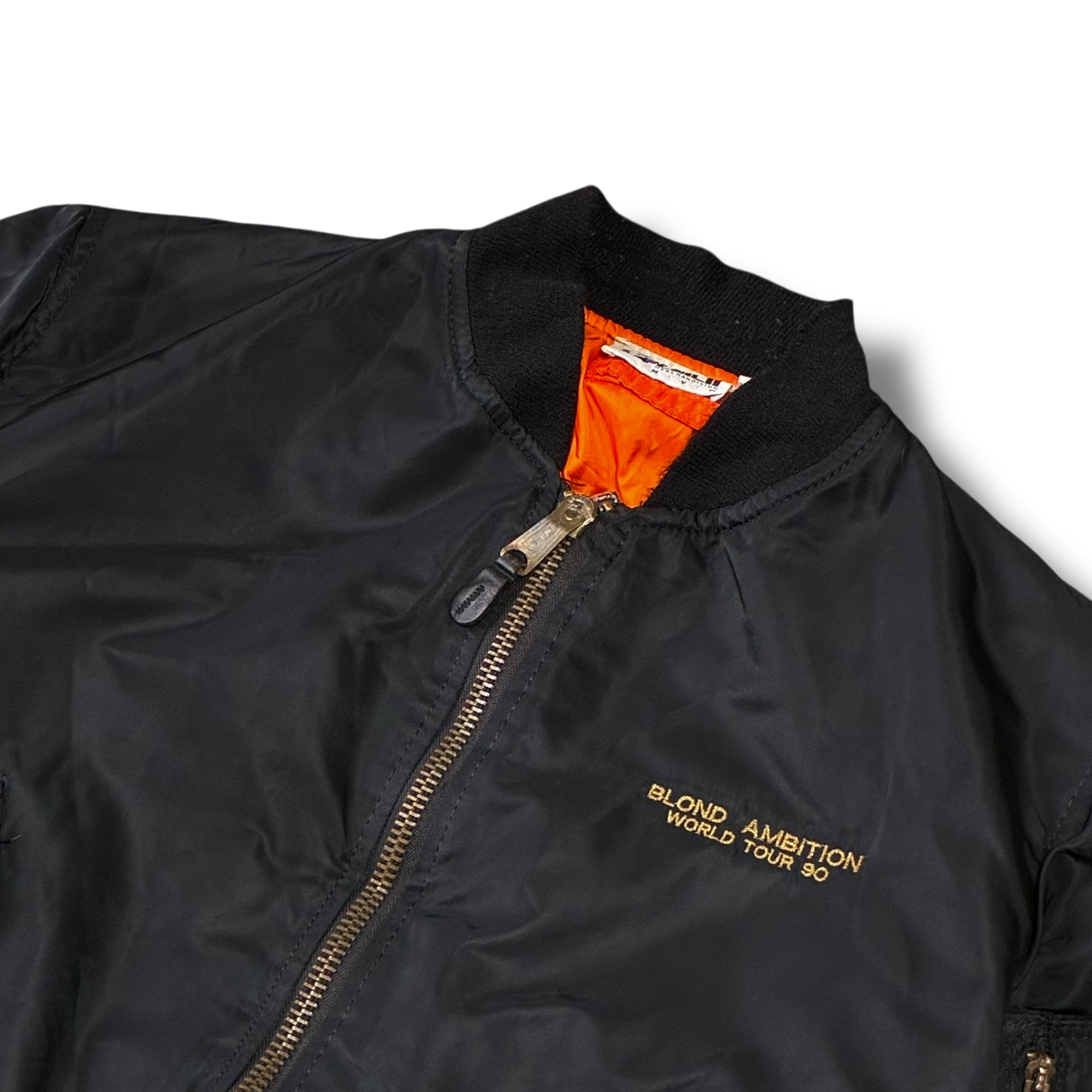 マドンナの最も象徴的なツアーの一つである「ブロンド・アンビション・ツアー」の歴史的な記念品としてコレクター含め海外ではかなりの高額で取引されているSpecialなボンバージャケットです。