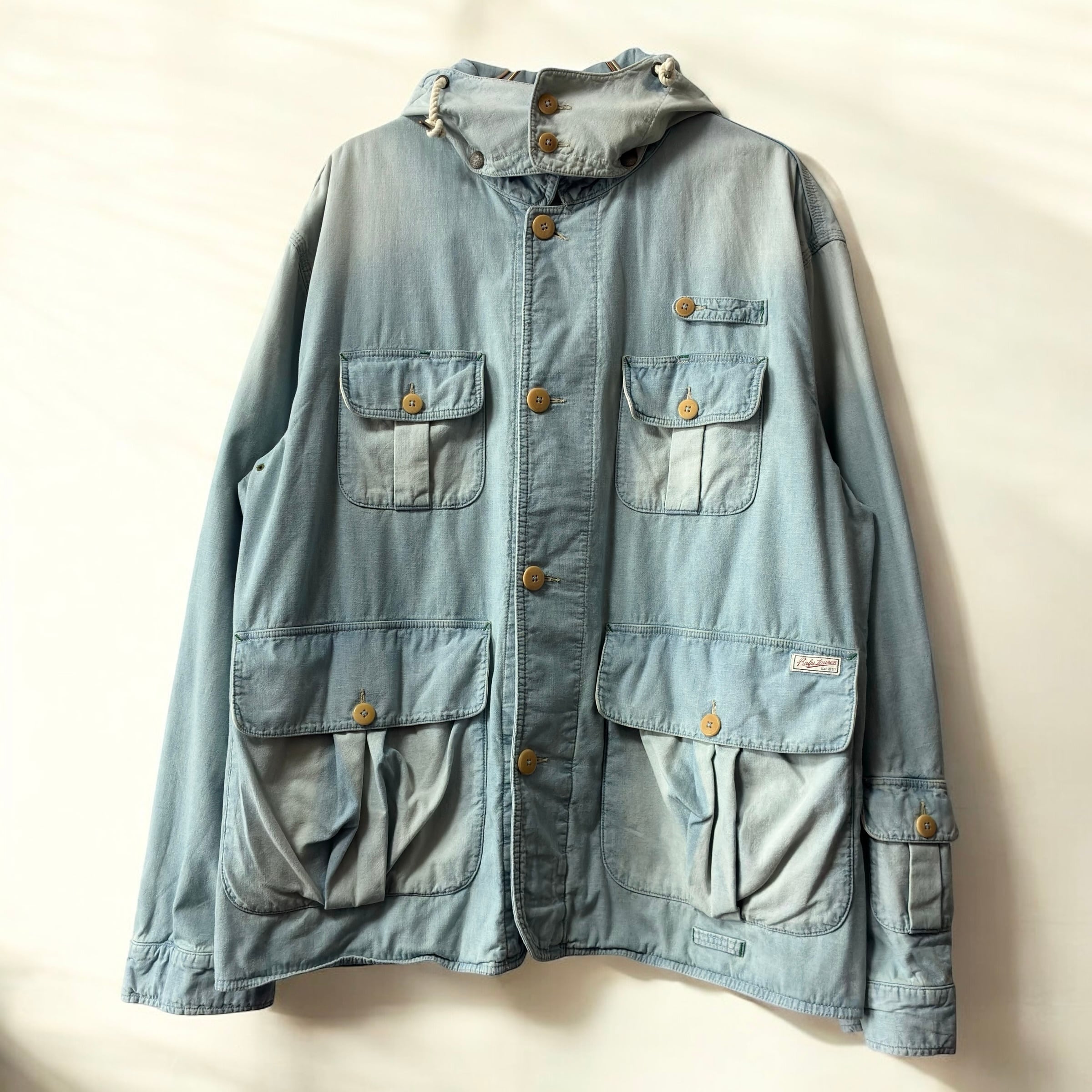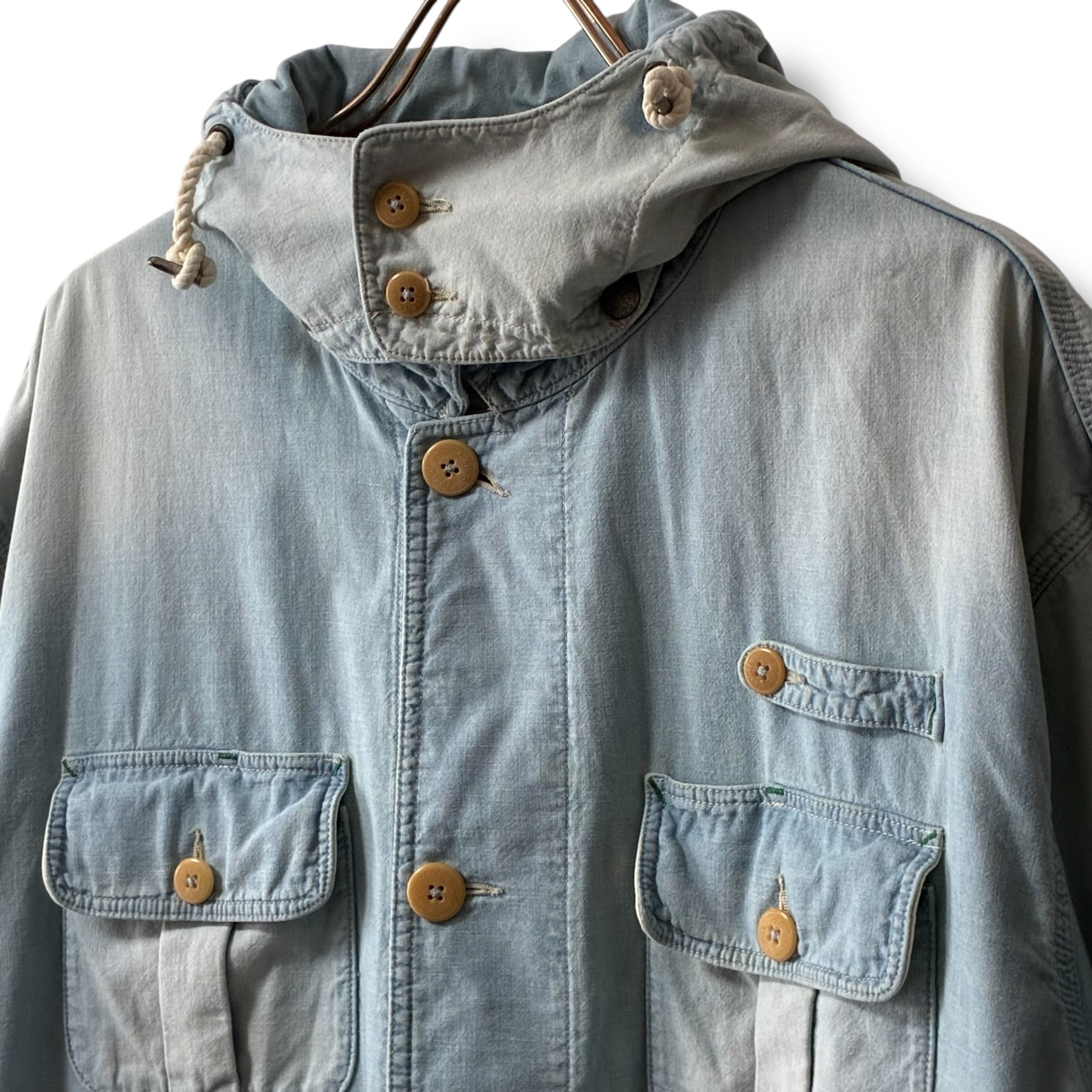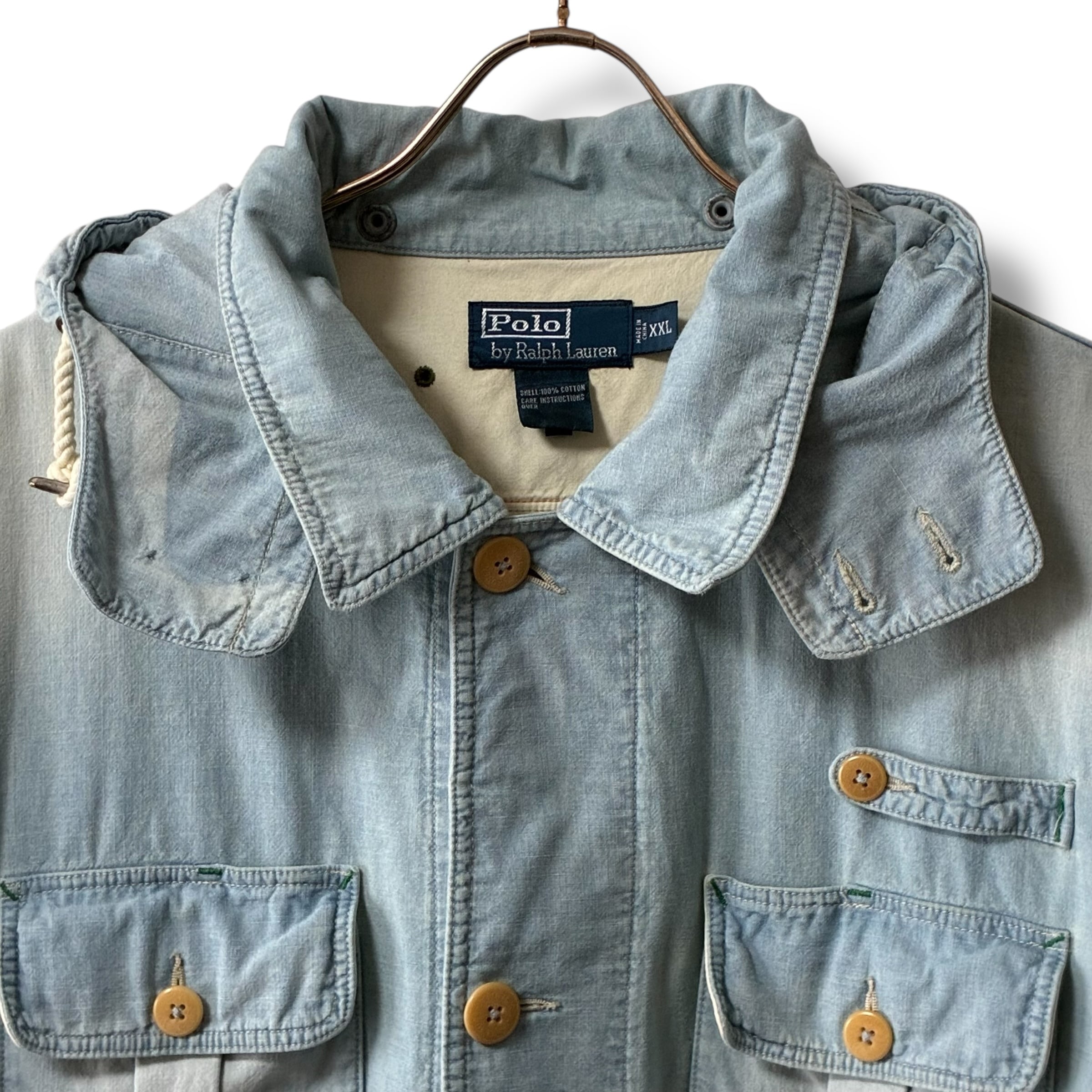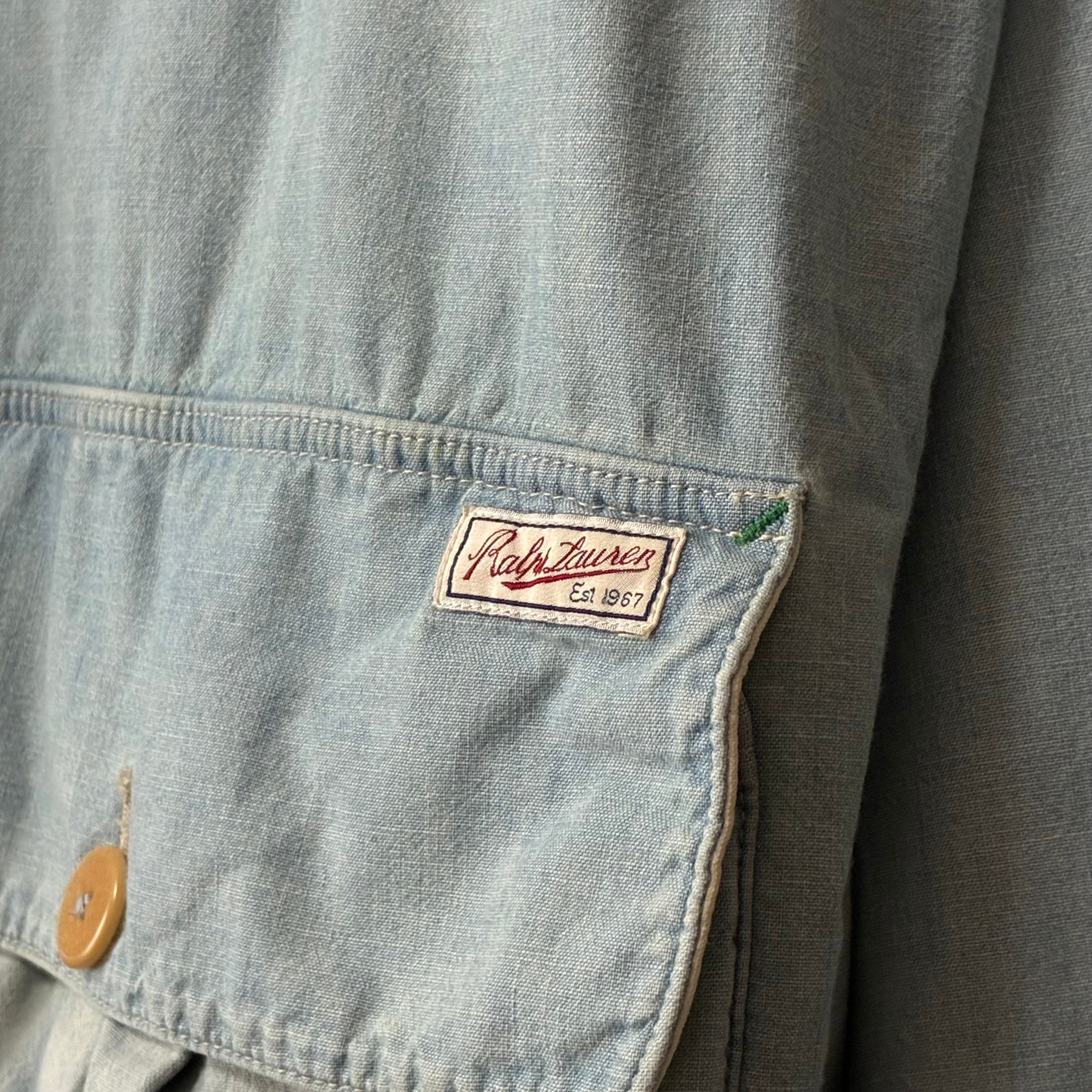 comment...90年代頃のラルフローレン、珍しいシャンブレー生地使用のハンティングジャケット。