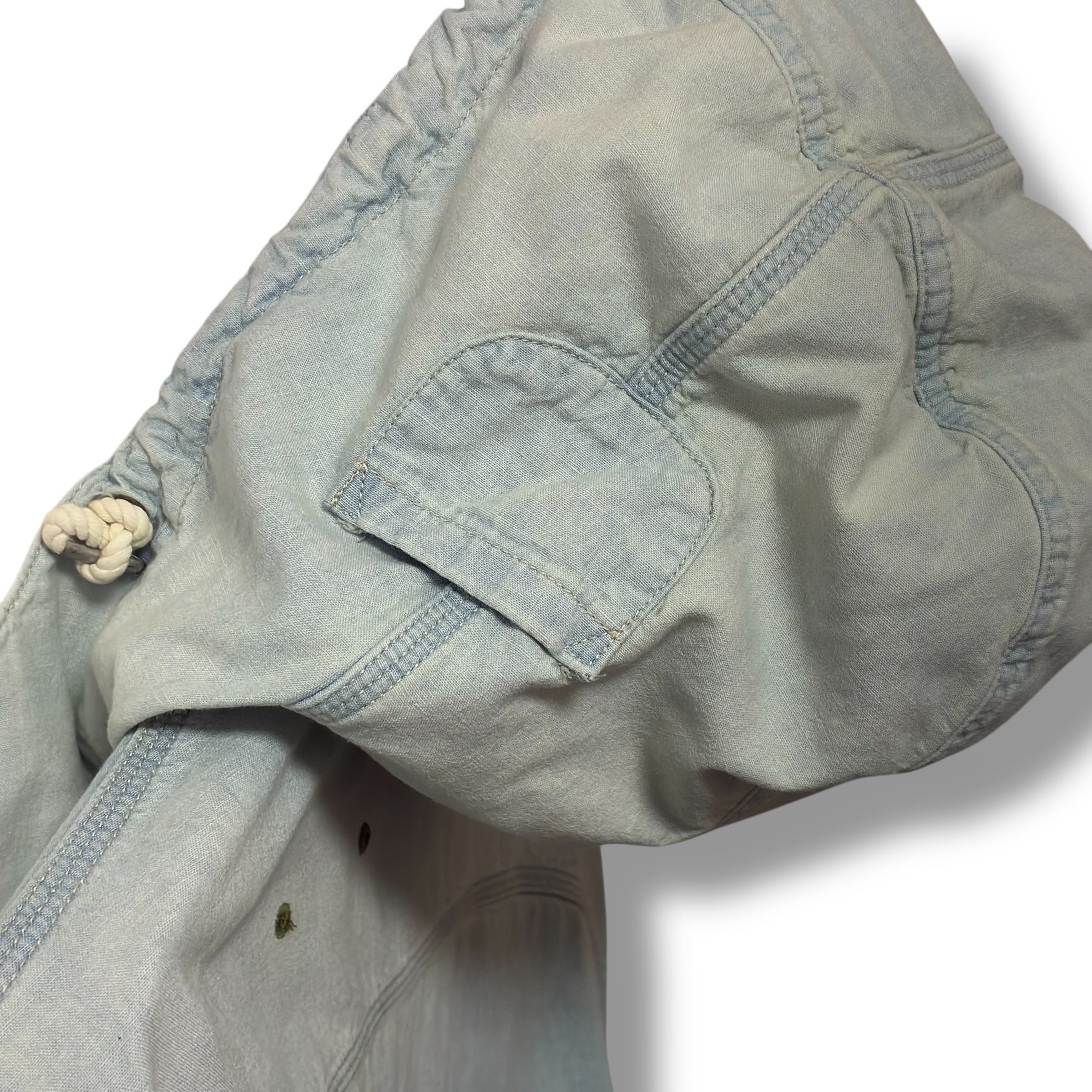 それでも柔らかなシャンブレー生地と風合いが相まって適度な落ち感とカジュアルな雰囲気が出た良いジャケットです。