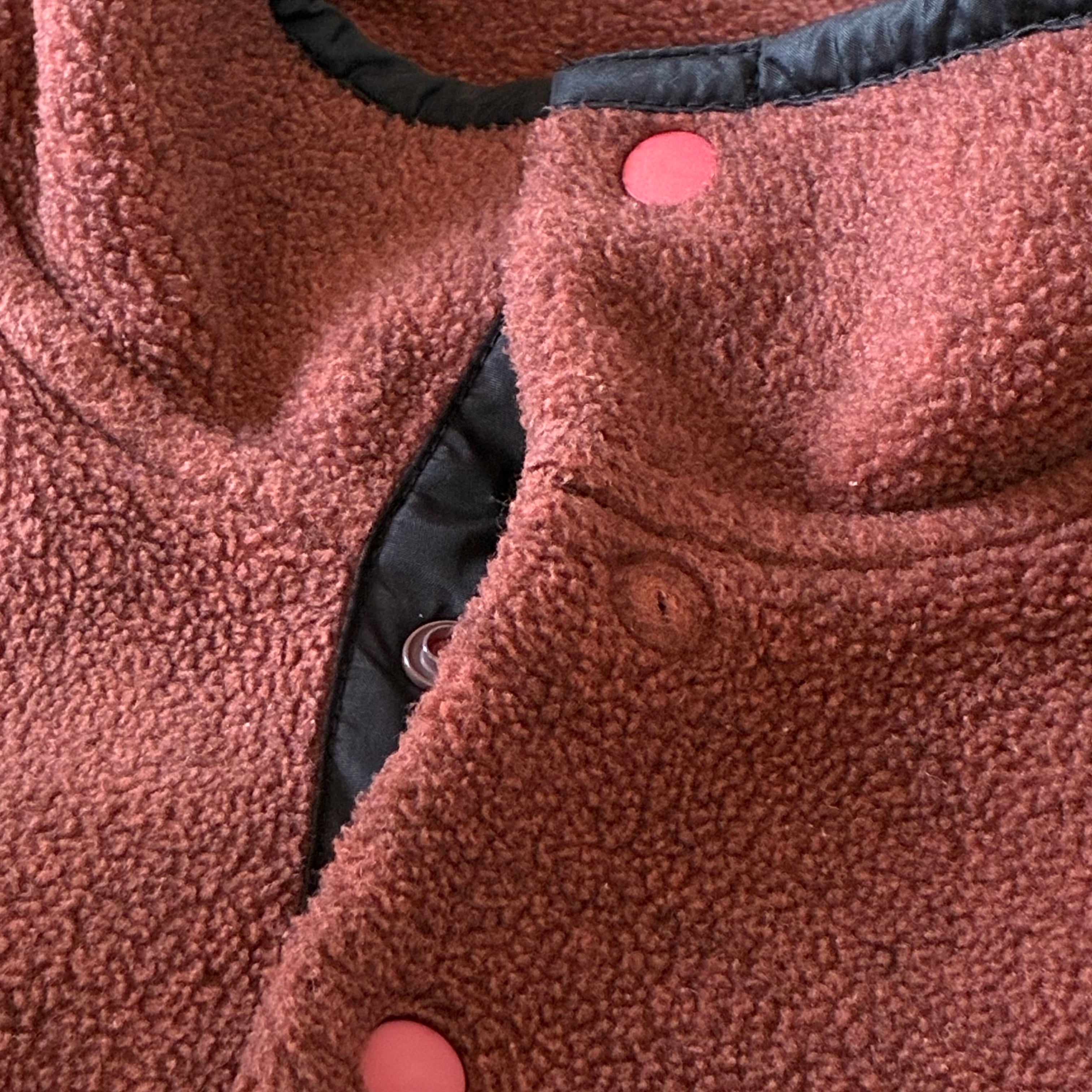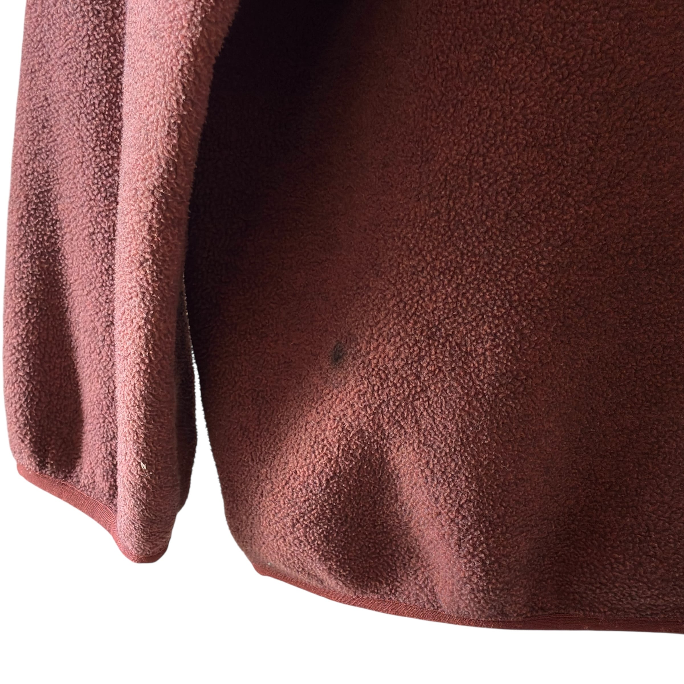 スナップボタン欠損[第二]バック下部に薄シミがありますが、フリースのへたりはなくフッカフカの肉厚且つ、その他目立つダメージ、縮みのない良好なコンディションです。