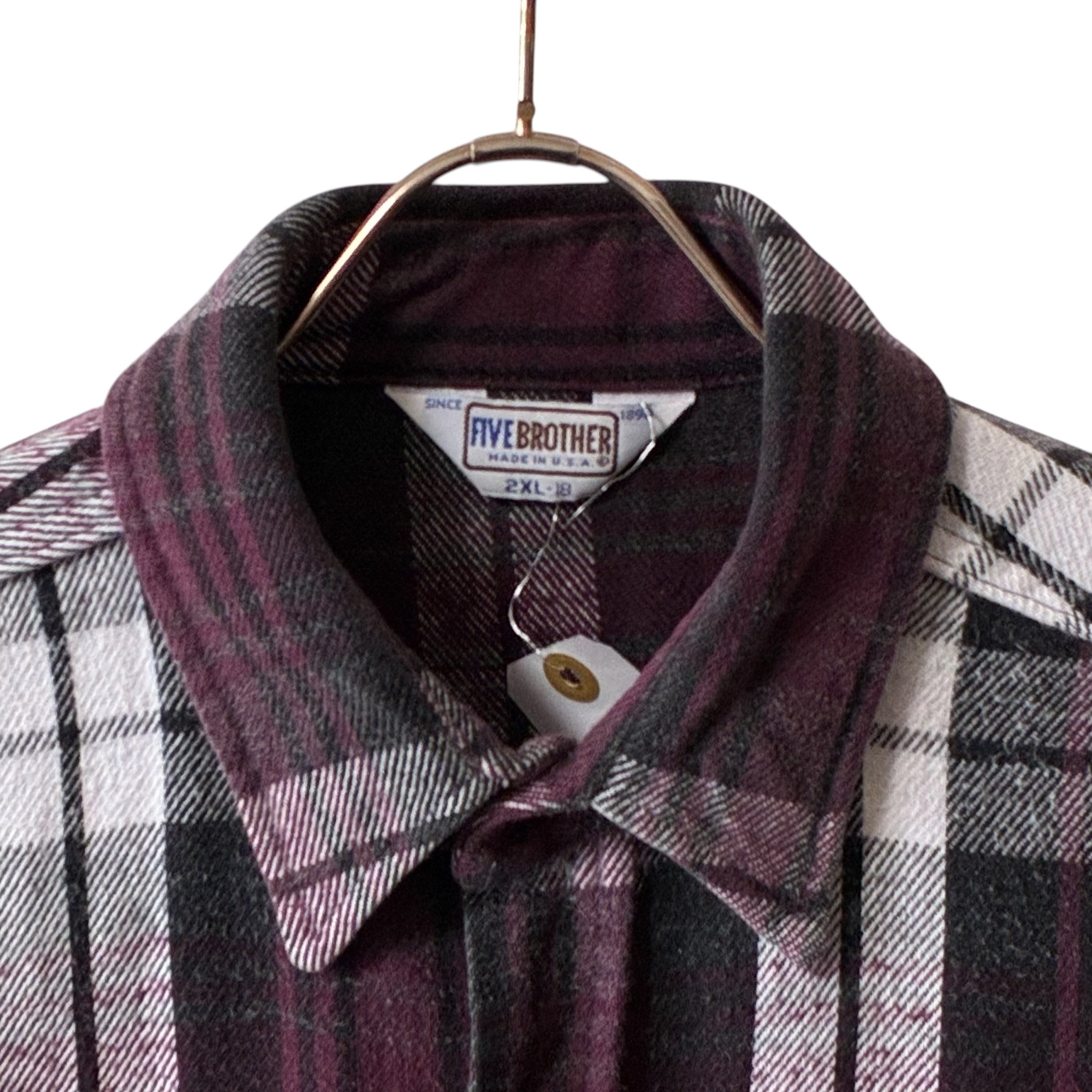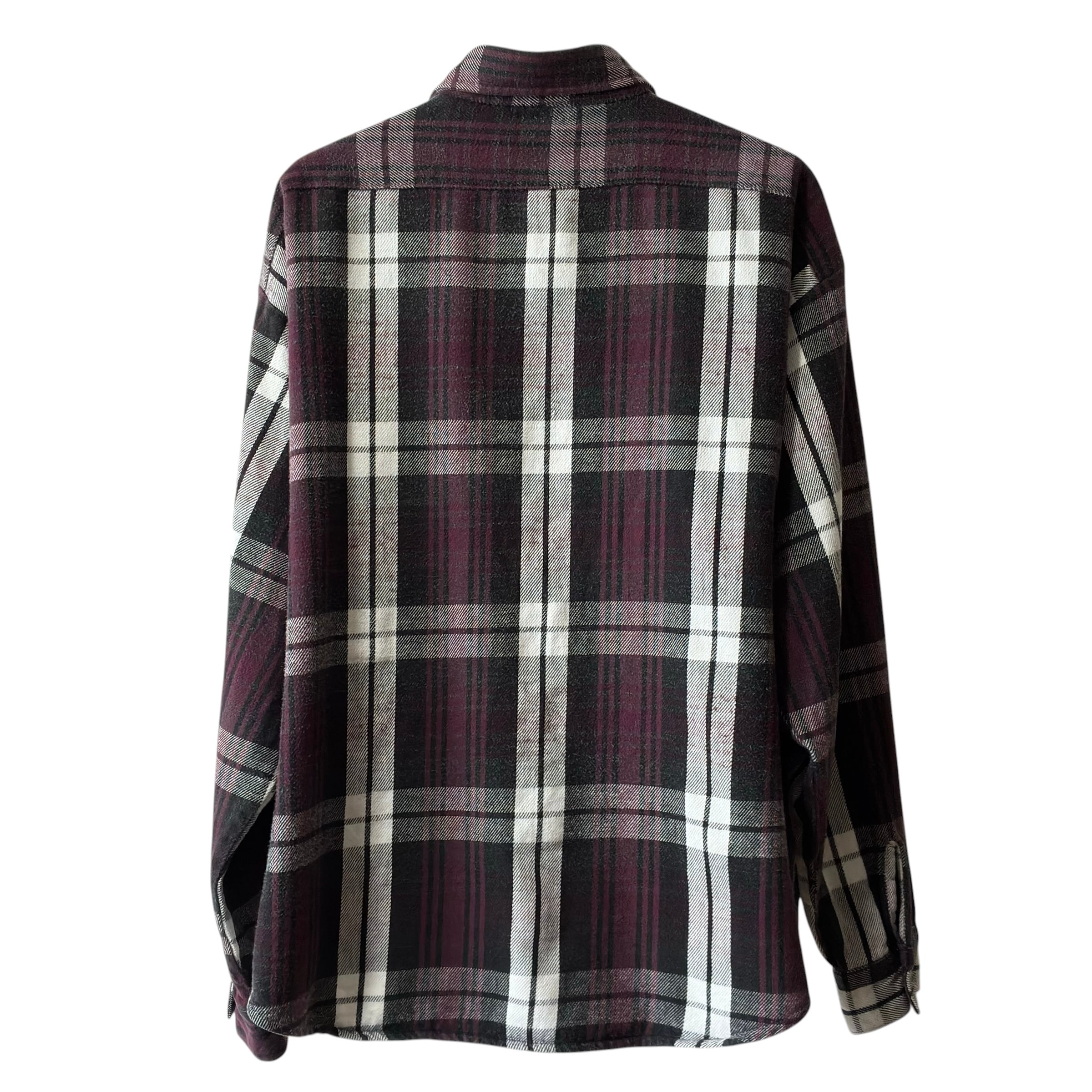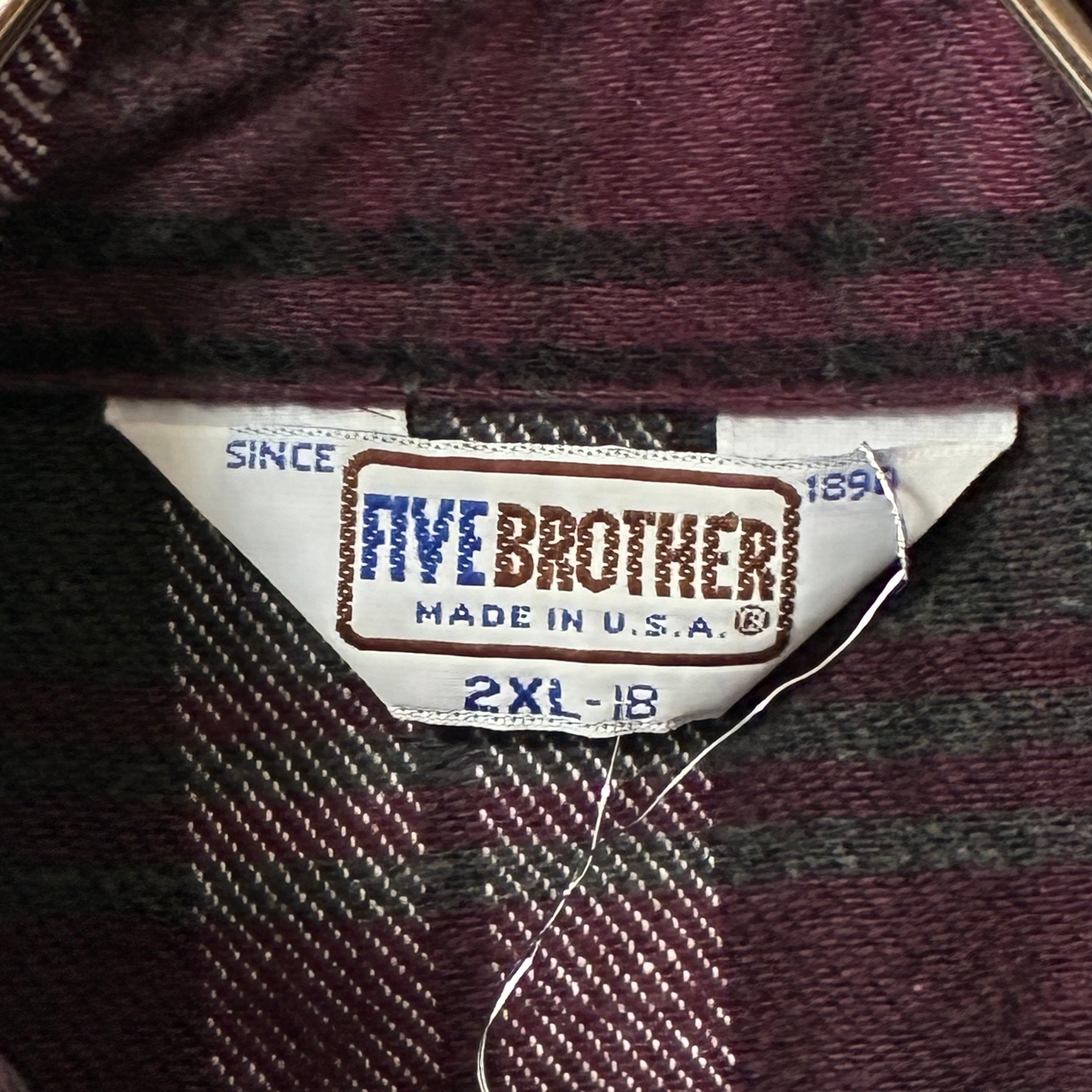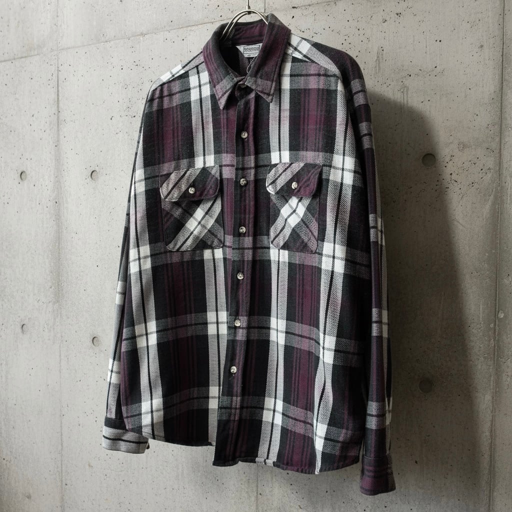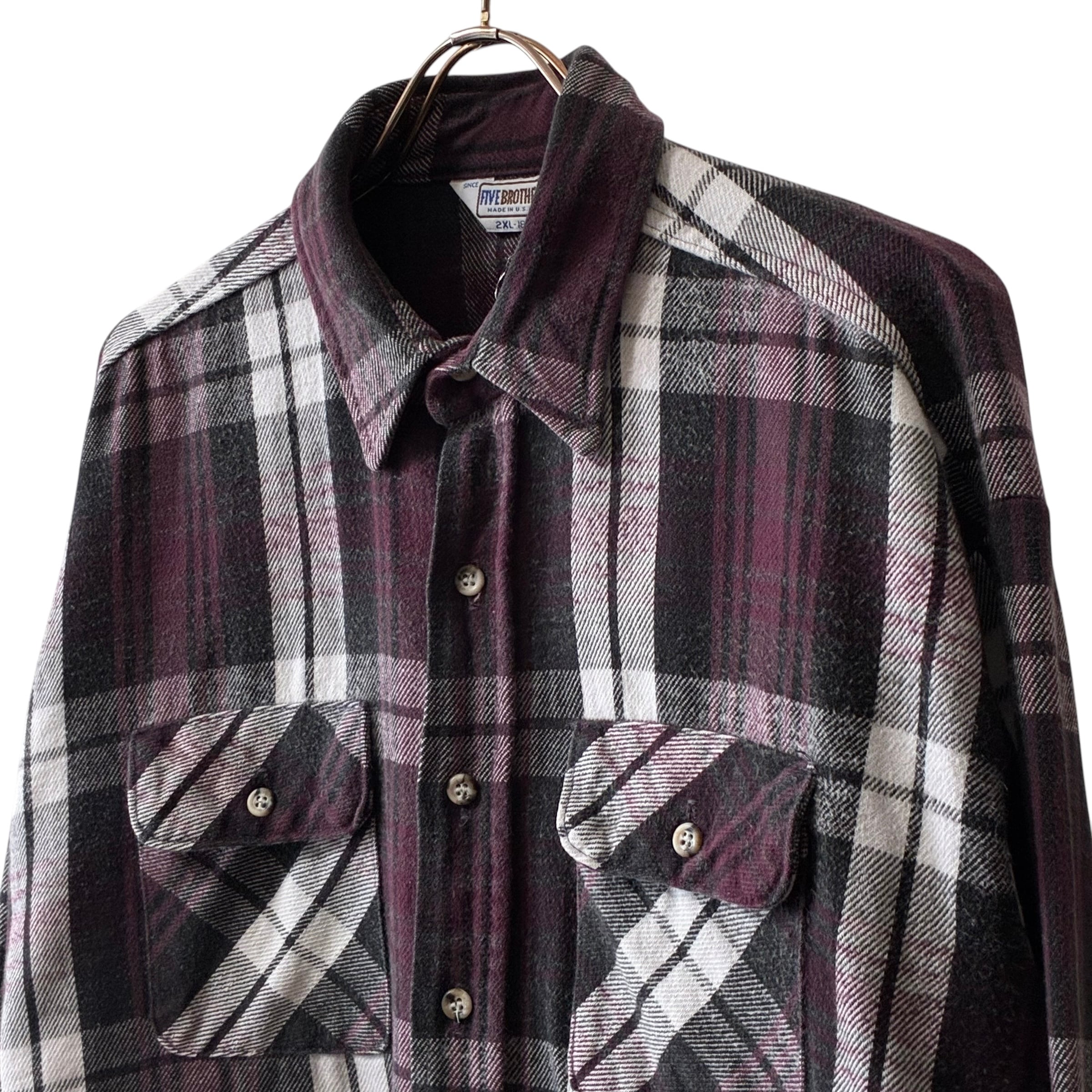 80's USA製 five brother ヘビーネルシャツ ブラック×パープル XXL
