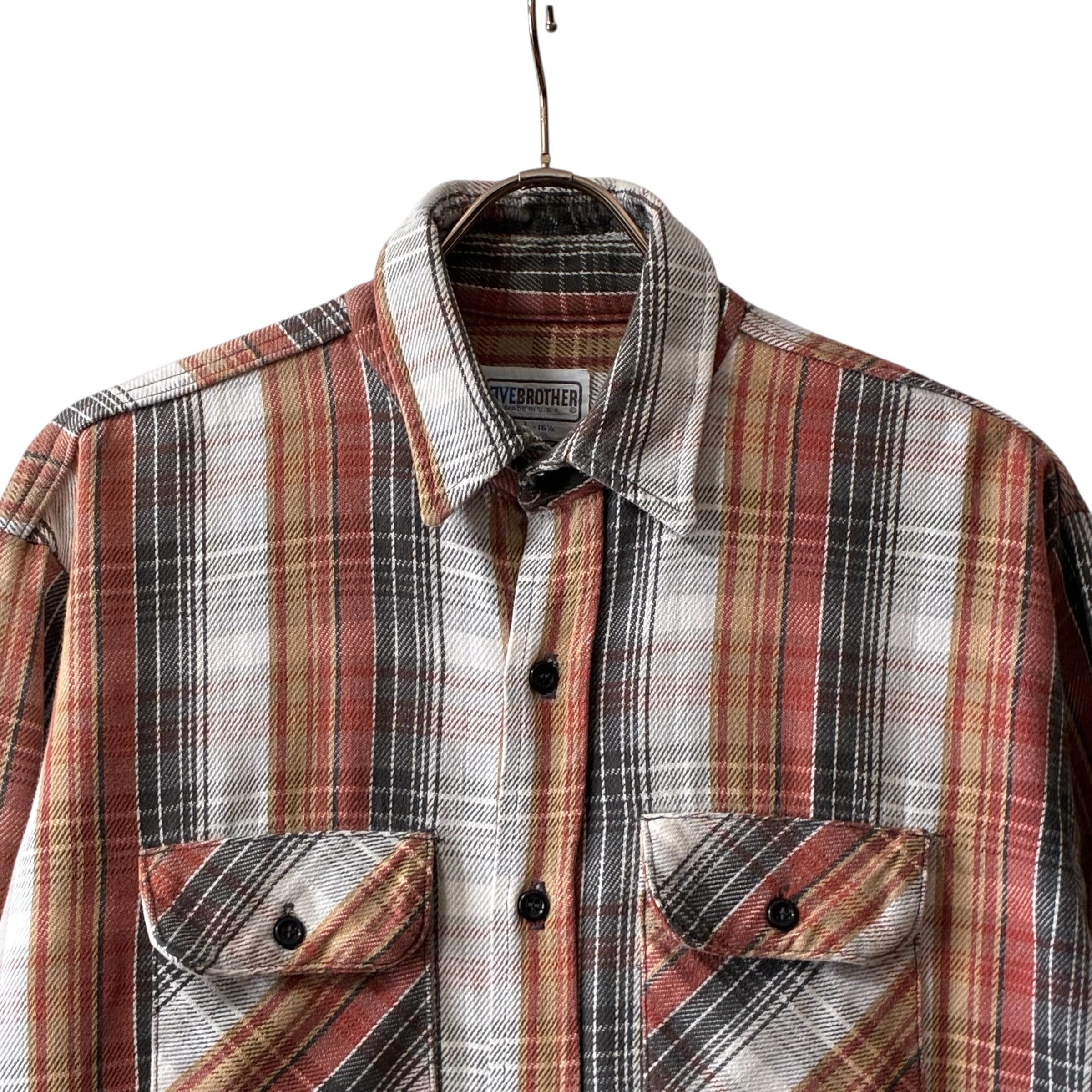 80's USA製 five brother ヘビーネルシャツ ブラウン L
